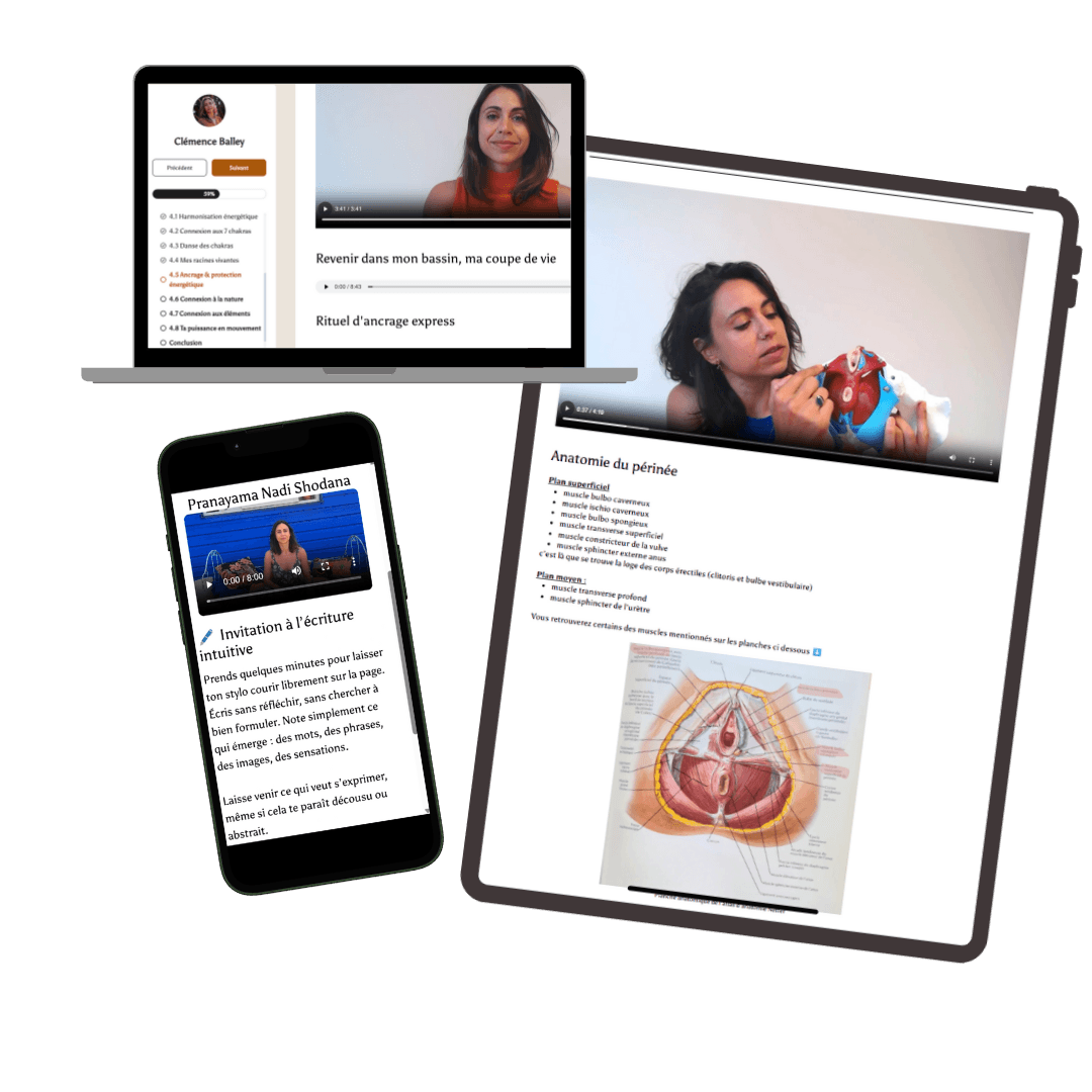 Un parcours qui se distingue par son approche globale et incarnée, qui ne se limite pas à la théorie ou au mental, mais intègre pleinement le corps, les émotions, l’énergie et la féminité sacrée.
